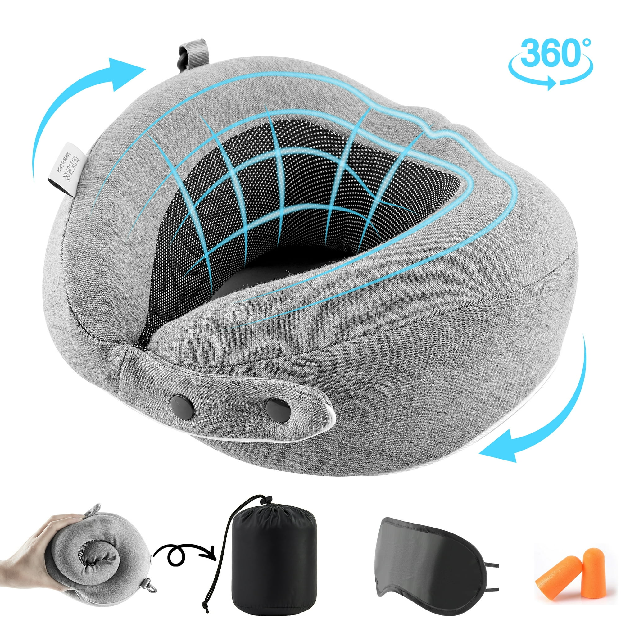 Travel in comfort with the MOONORAH Memory Foam Neck Pillow, designed for airplanes, cars, and office use. Ergonomic support reduces neck strain during long journeys. Foldable design comes with eye masks, earplugs, and a luxury travel bag for convenience. Soft, gray memory foam adapts to your neck for personalized comfort. Perfect for stress-free and restful travel anywhere.