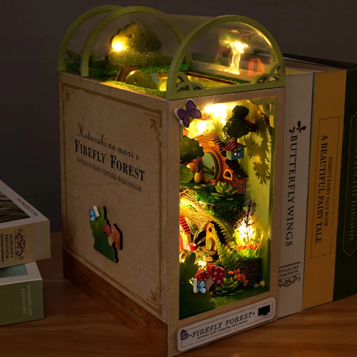 Add magical charm to your home décor with the OROMYO DIY Book Nook Kit. This 3D wooden puzzle creates an enchanting Firefly Forest scene with furniture and LED lighting. Perfect as a decorative bookend or display piece on shelves and desks. Fun and educational, ideal for kids and adults who love miniature building projects. A creative décor accent that brings whimsy and light to any room.