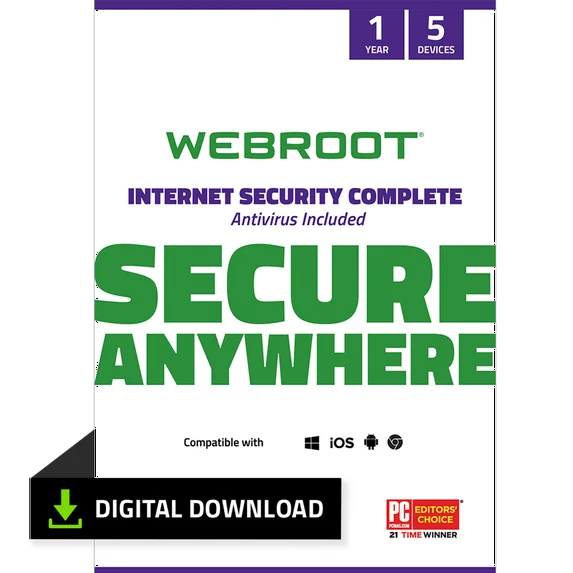 Protect up to 5 devices with Webroot Internet Security Complete, offering advanced antivirus and internet protection for Windows, macOS, Android, and iOS. Lightweight security keeps your devices safe from malware, ransomware, and online threats without slowing performance. Easy digital download and quick activation get you protected fast. Includes features like real‑time threat detection, secure browsing tools, and identity protection. Ideal for home and mobile users seeking seamless, comprehensive cybersecurity.